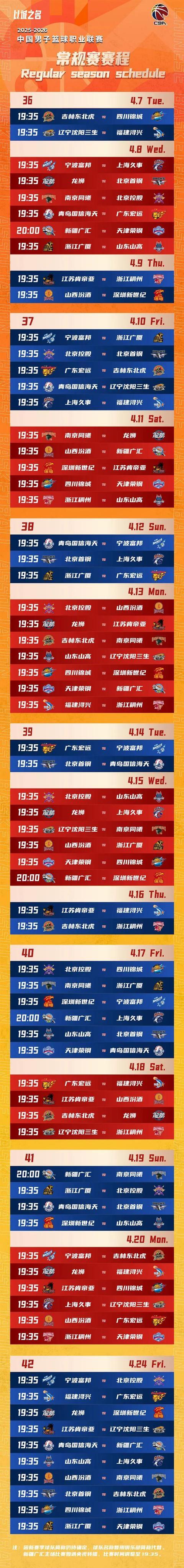 CBA新赛季赛程公布!12月12日揭幕战